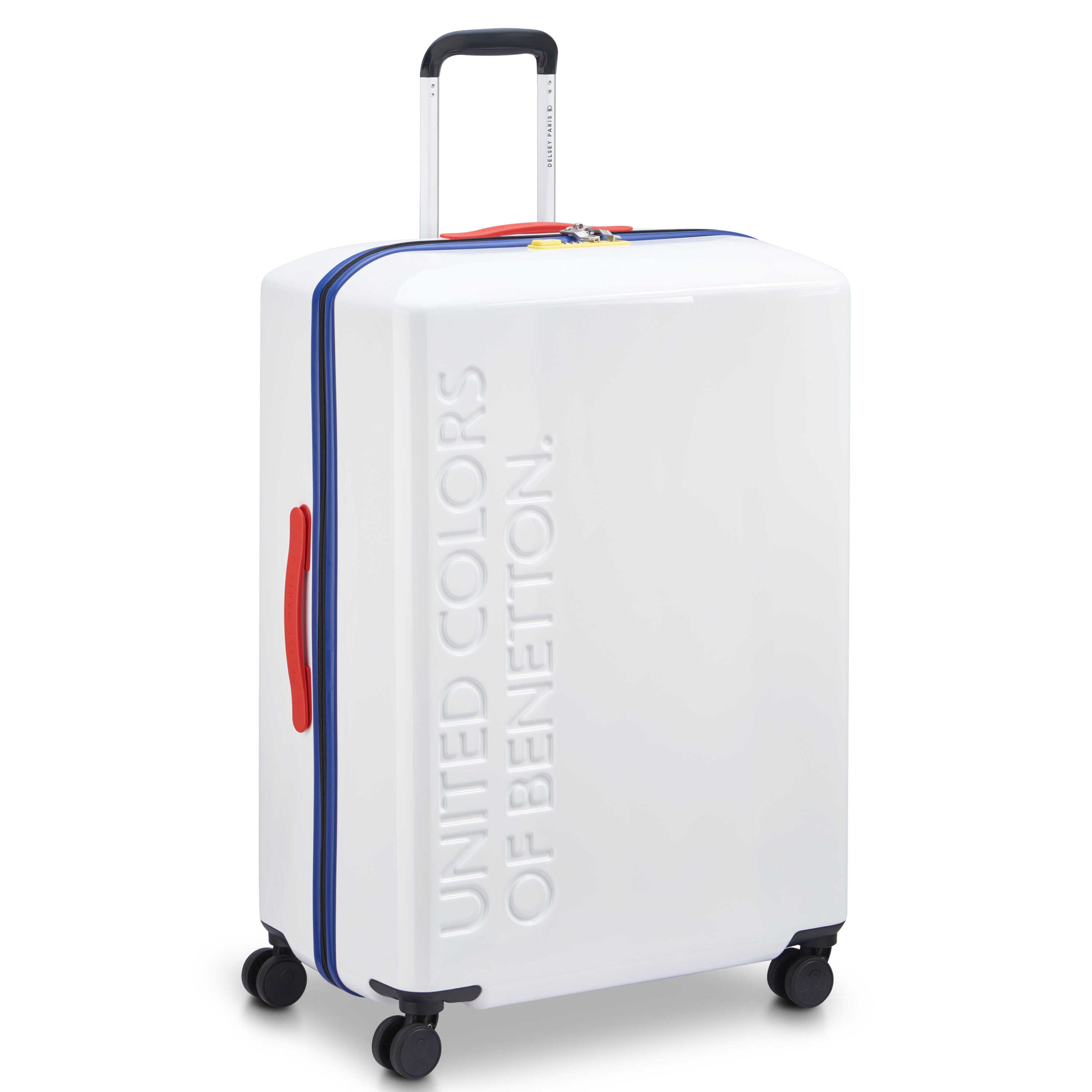 Duża walizka United Benetton 76 cm od Delsey to idealne połączenie nowoczesnego stylu, elegancji i funkcjonalności, które doskonale wpisuje się w świat marki Benetton. Ta współpraca łączy francuską wyrafinowaną estetykę Delsey z odważnym, kolorowym światem Benetton, tworząc bagaż, który nie tylko spełnia praktyczne potrzeby, ale również wyraża osobisty styl podróżnika.