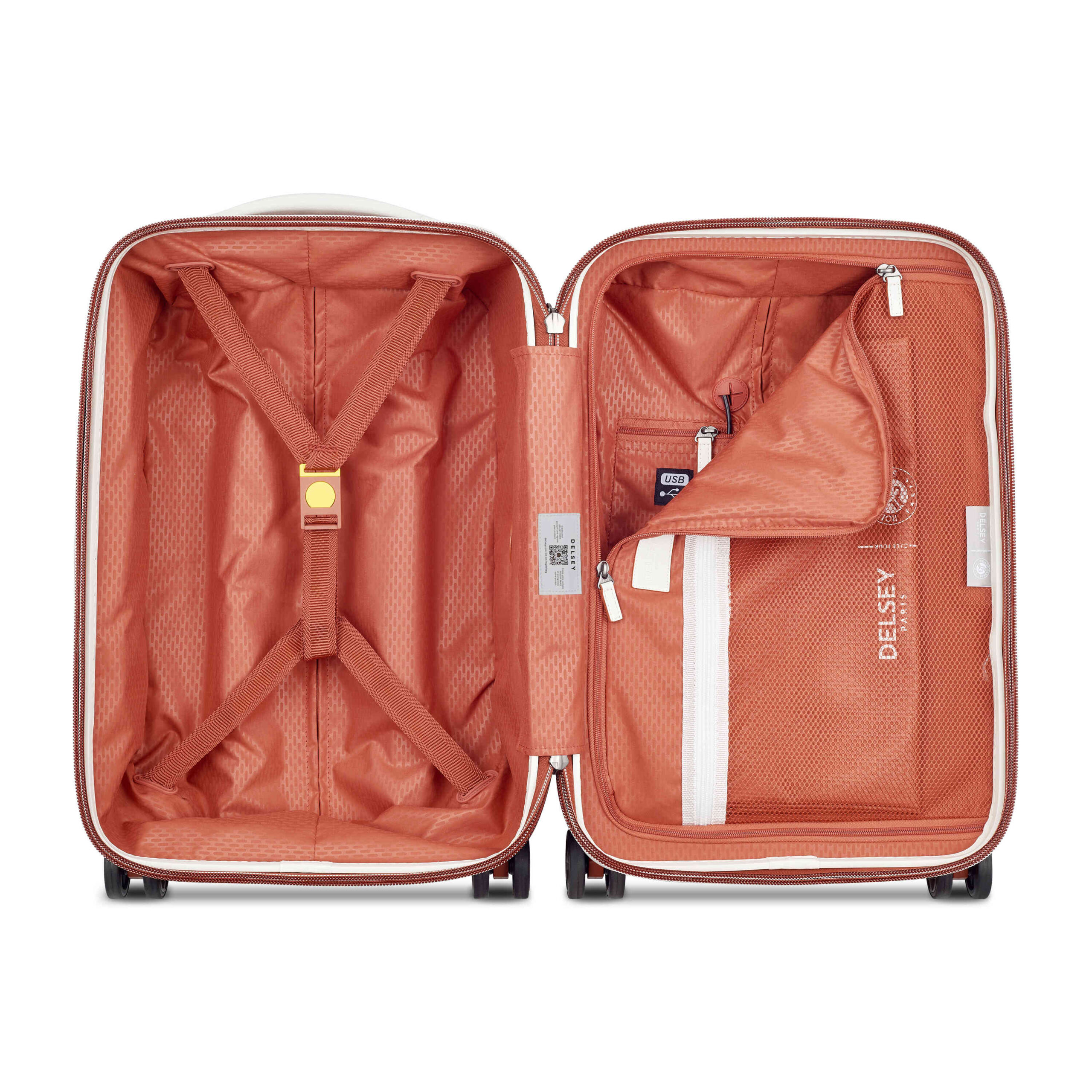 Koniec z bagażem uszkodzonym przez celników! Zamek szyfrowy TSA umożliwia zabezpieczenie bagażu za pomocą osobistego kodu i jednocześnie pozwala Urzędowi Bezpieczeństwa Transportu (TSA) na sprawdzenie bagażu za pomocą specjalnego klucza, bez obawy o jego uszkodzenie. Walizka jest wyposażona w opatentowany przez DELSEY PARIS ultra bezpieczny system zamykania: zamek błyskawiczny SECURITECH® 2. Ten unikalny system zamknięcia jest trzykrotnie trudniejszy do sforsowania przez niepożądane osoby, niż tradycyjny zamek błyskawiczny, co zapewnia optymalne bezpieczeństwo Twojego bagażu.