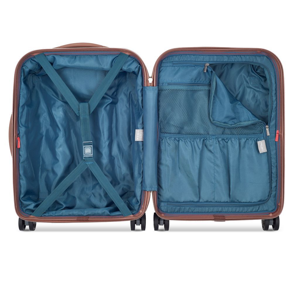 Walizka Delsey St Tropez Slim 55 cm wyróżnia się wyrafinowanym wyglądem, dużą wytrzymałością, przyjemną obsługą i inteligentnym układem wewnętrznym. Łączy w sobie wszystkie atuty pozwalające na pobyt i wyjazd w najlepszych warunkach. Staranna konstrukcja z poliwęglanu zapewnia doskonałą odporność na zużycie. Jej teksturowane wykończenie jak szlachetna tkanina, kontrastujące, płowe wykończenia i detale ze sztucznej skóry przyczyniają się do eleganckiego stylu w najmniejszym szczególe. Jej niewielkie rozmiary sprawiają, że nadaje się na pobyt od 2 do 5 dni, zachowując zgodność w szczególności ze standardami kabin EasyJet i Air France. Najbardziej wymagający podróżnicy docenią obecność rozszerzanego klinu zapinanego na zamek, pozwalającego zyskać 5 litrów dodatkowej przestrzeni !