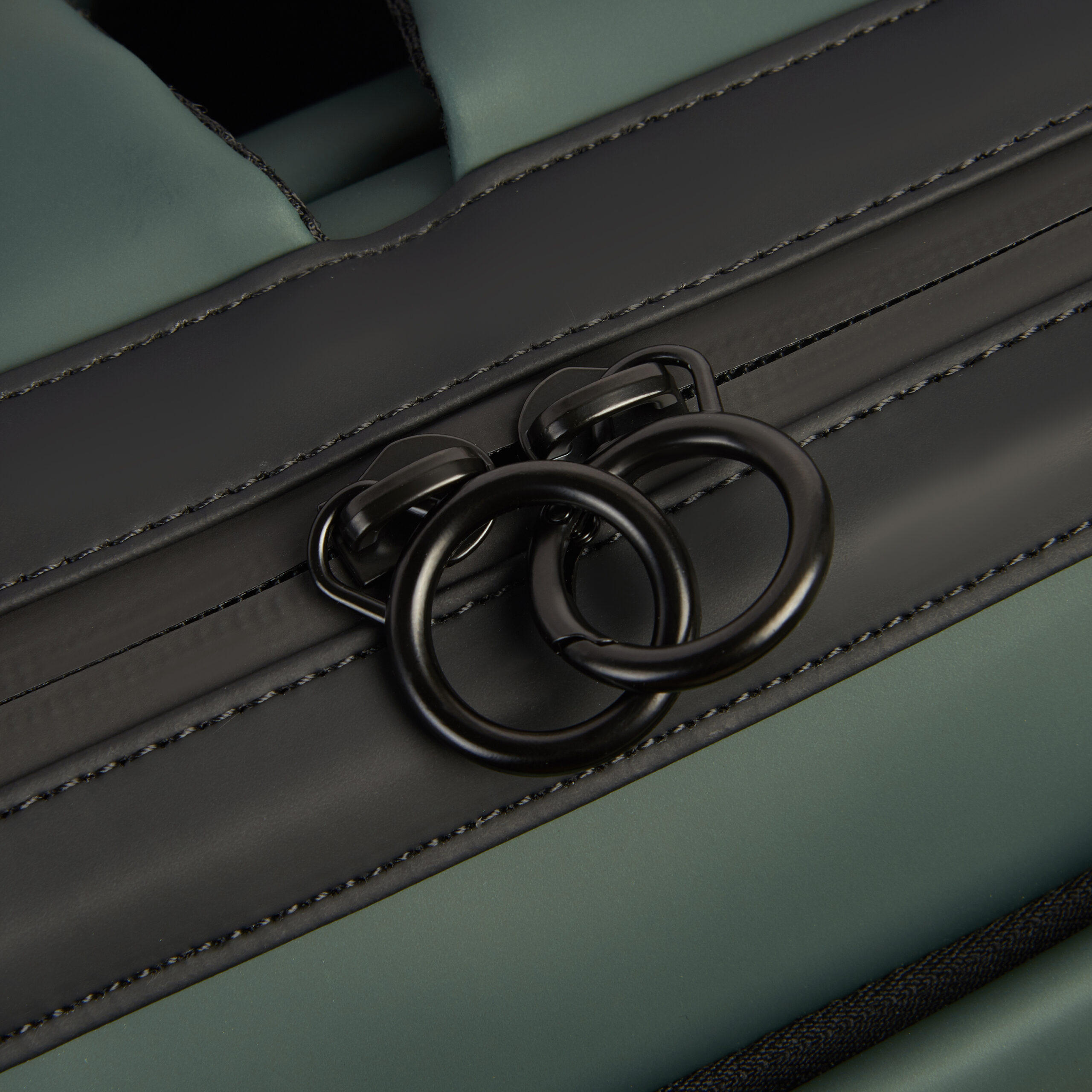 Prosta i niezawodna ochrona zawartości dzięki unikalnej konstrukcji systemu zamykania. Klamrę z karabinkiem wystarczy włożyć do drugiej klamry. Dodatkowo klamra wykonana jest z wodoodpornego materiału, dzięki czemu jak cały plecak, odporna jest na niekorzystne warunki atmosferyczne. Dodatkowo plecak został wyposażony w bezpieczną kieszeń, w której Twoje karty płatnicze będą bezpieczne.