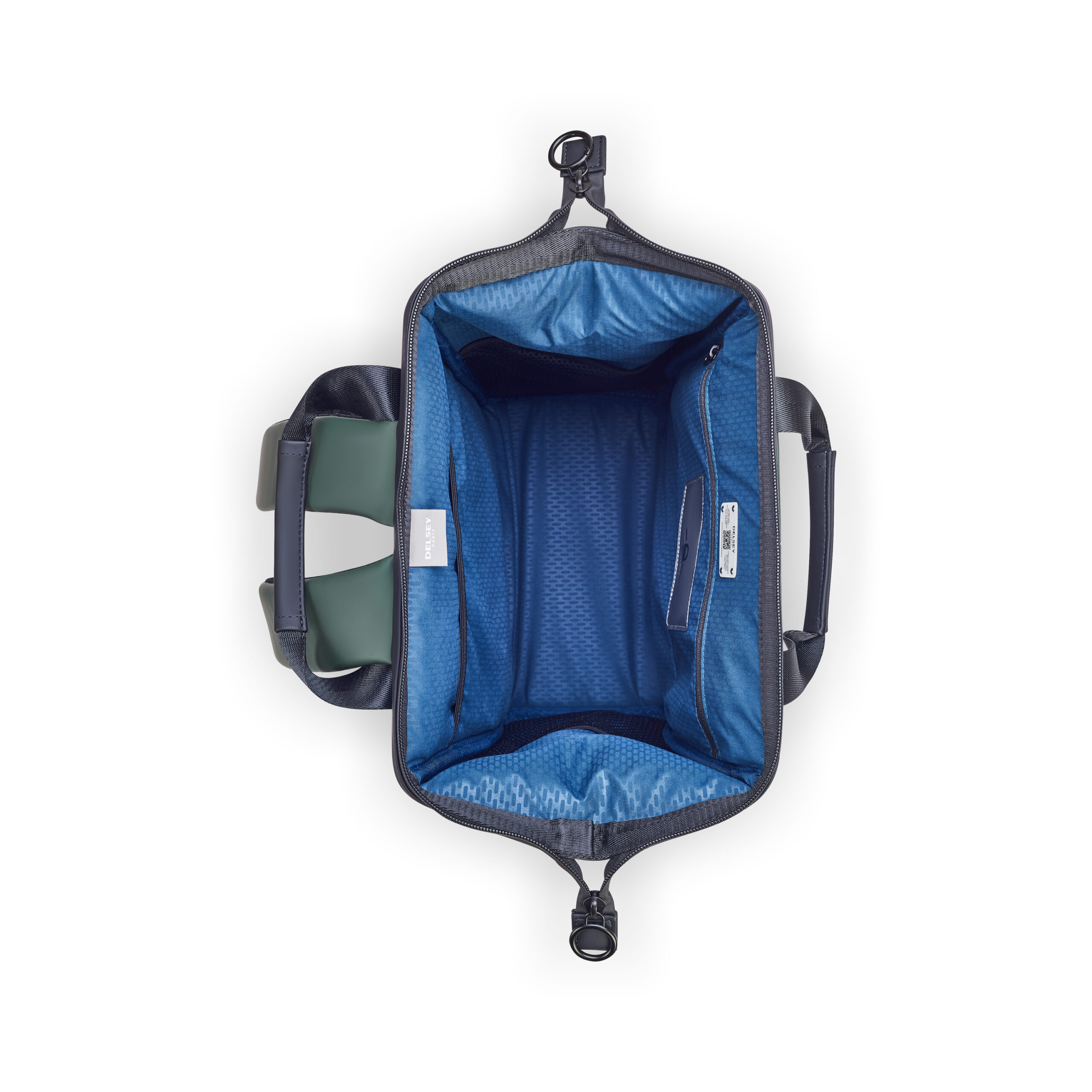 Specjalny pas mocujący z tyłu torby, umożliwia jej bezpieczne ułożenie na walizce, bez ryzyka jej wypadnięcia.