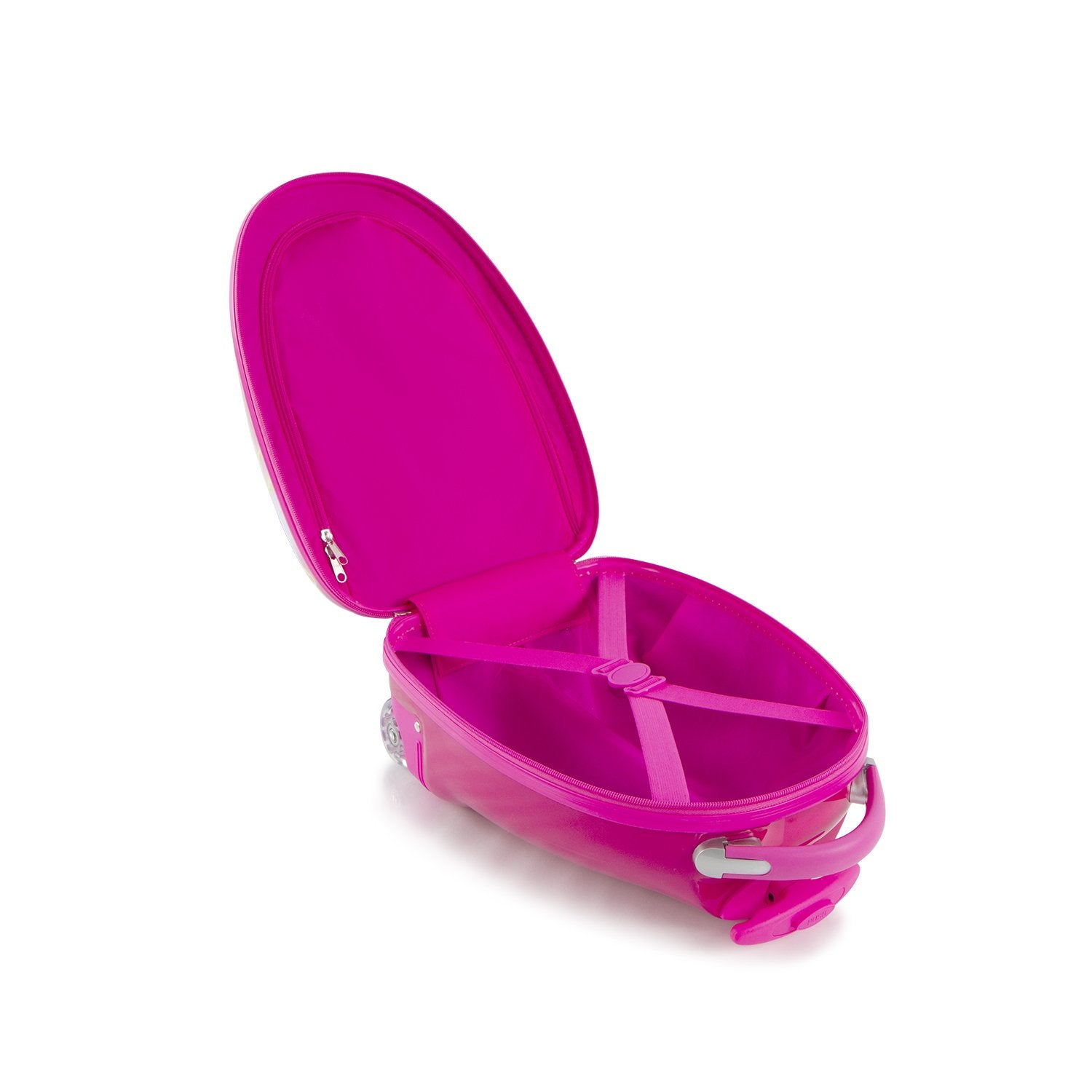 – W pełni wyściełane i kolorowe wnętrze zawiera podwójne paski blokujące, które utrzymują rzeczy na miejscu, oraz zapinaną na zamek przegrodę, dzięki której dzieci mogą pakować się tak jak dorośli.