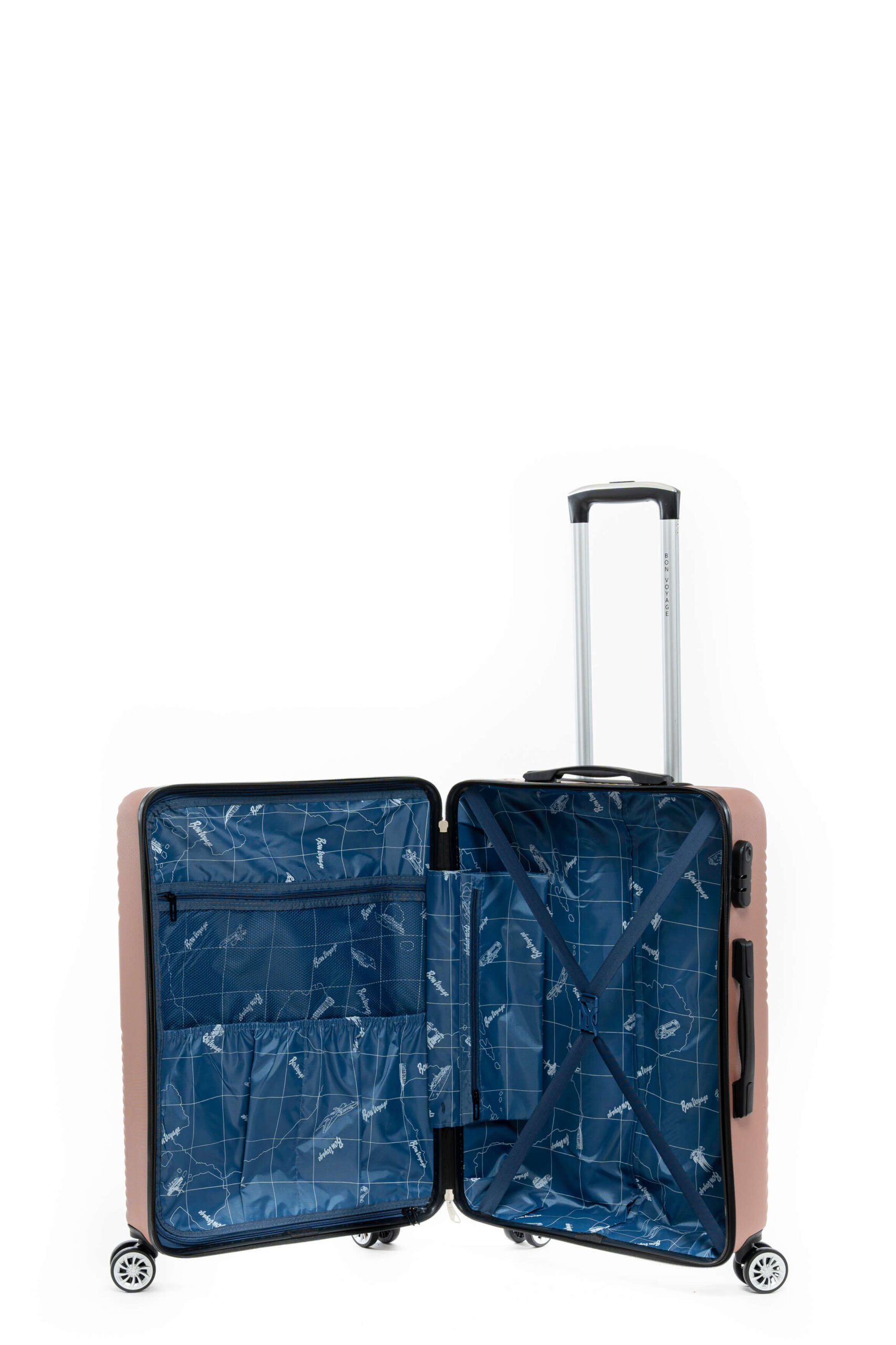 Walizka została wykonana z wysokiej jakości poliwęglanu, co gwarantuje dużą twardość i trwałość. Wewnątrz walizki znajdziesz elegancką podszewkę, którą łatwo utrzymać w czystości.