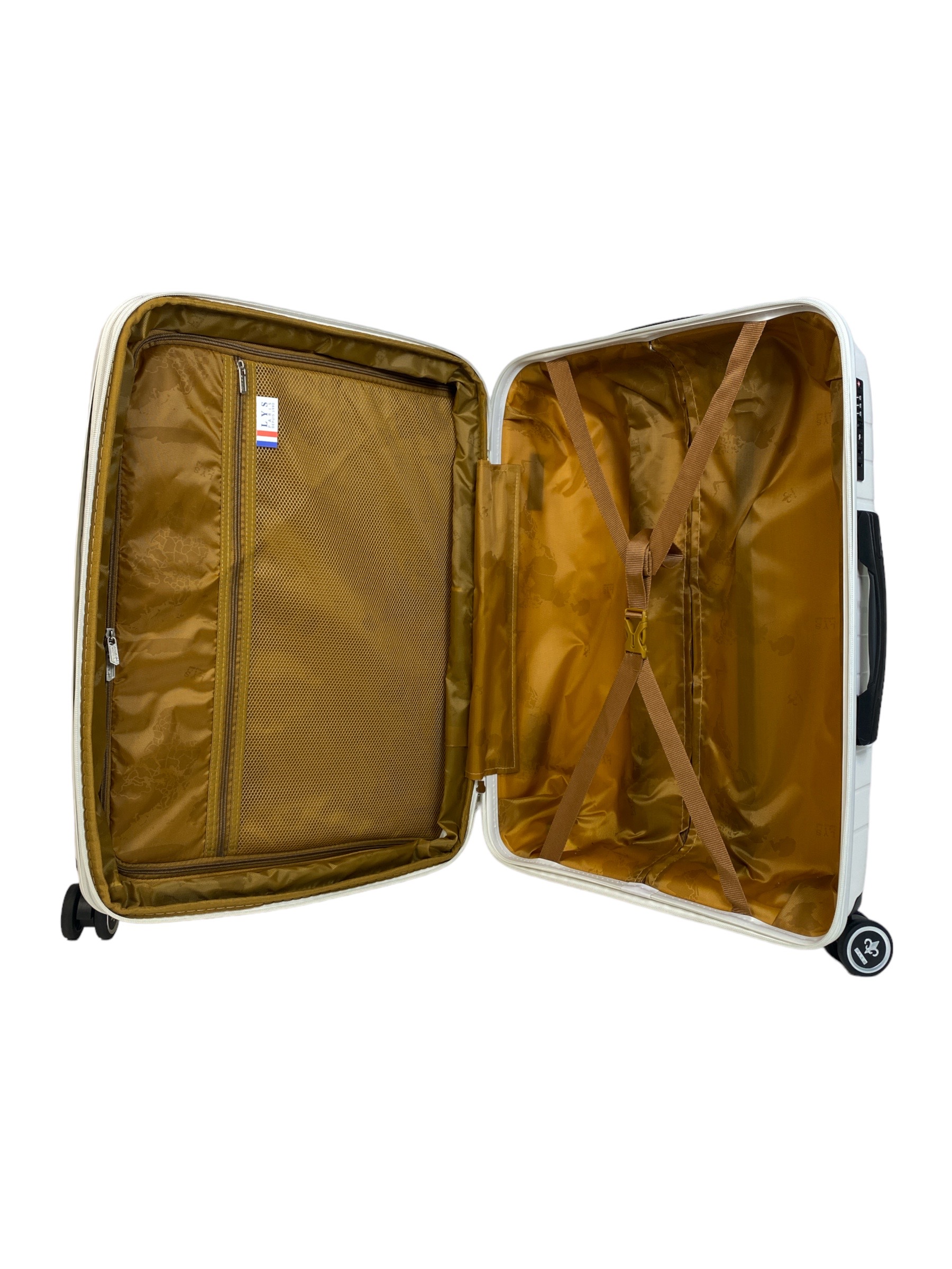 Wnętrze walizki Lys zostało starannie zaprojektowane z myślą o Twoim komforcie i organizacji bagażu. Wnętrze walizki składa się z jednej dużej komory, która pozwala na pakowanie rzeczy w wygodny i uporządkowany sposób. Wewnątrz walizki znajdują się również paski mocujące, które utrzymują Twoje rzeczy na miejscu podczas transportu. Dodatkowo, walizka posiada jedną zamykaną kieszeń z siatki, w której możesz przechowywać mniejsze przedmioty lub dokumenty.