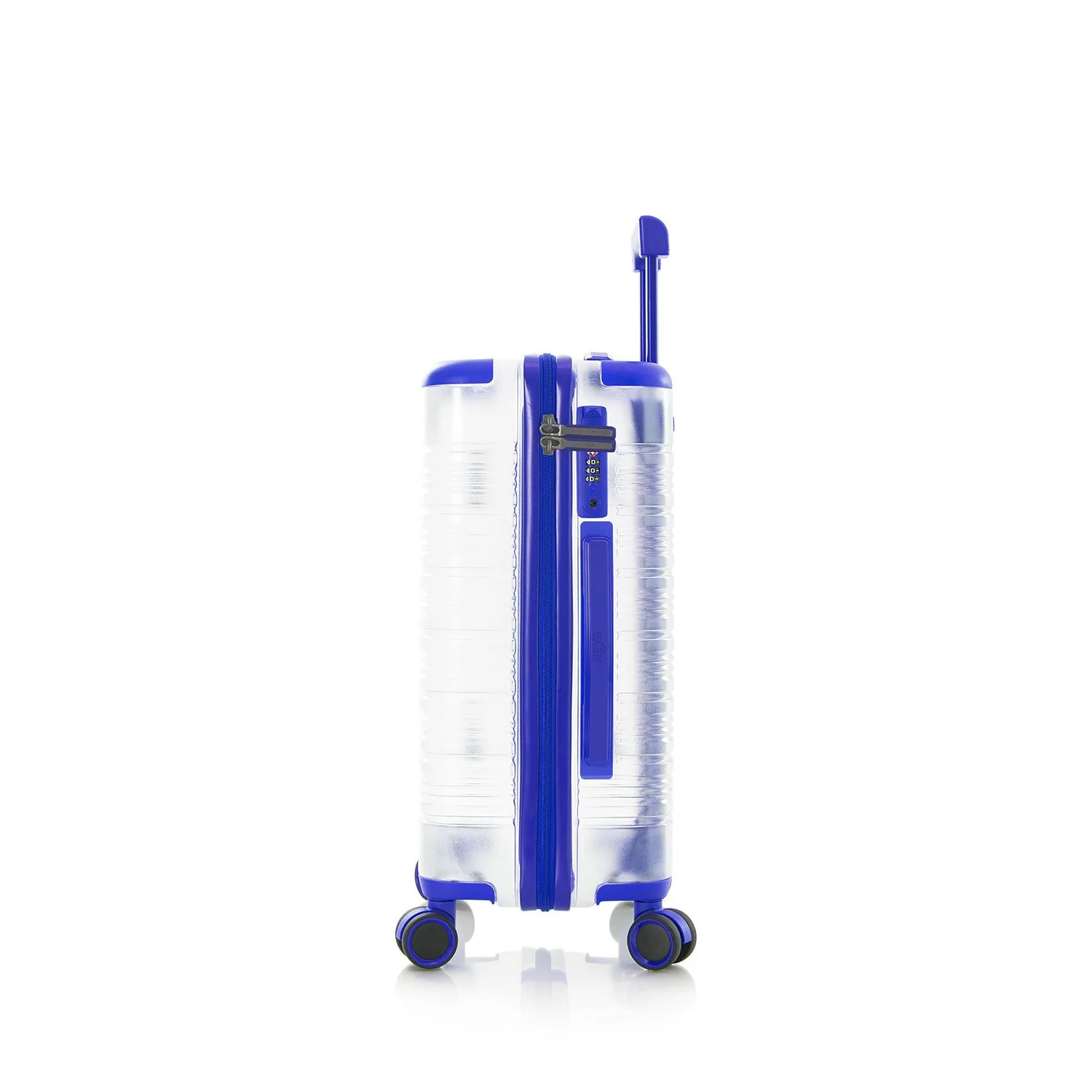 Przeźroczysta walizka na kółkach X-Ray dostępna jest w trzech kolorach: czerwony, niebieski lub czarny – każdy z dopasowanymi kolorystycznie akcentami.